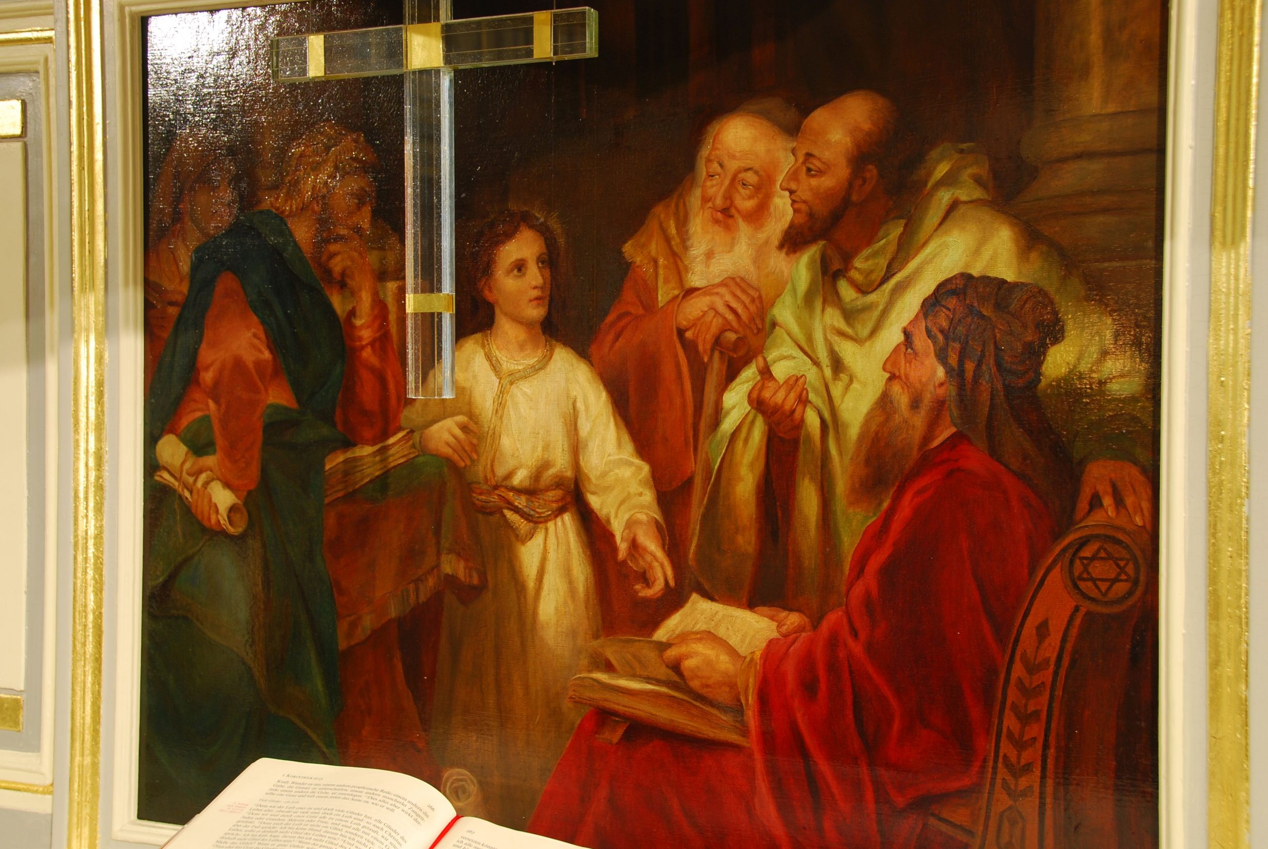 Am Altar in der St.-Georgs-Kirche prangt markant ein Davidsstern. Zu sehen ist er auf dem Altargemälde. Es zeigt jüdische Gelehrte in der Diskussion mit dem zwölfjährigen Jesus im Tempel – eine biblische Szene, die im Lukas-Evangelium geschildert wird. Im Dialog gehen Dr. Michael Rosenkranz, Beauftragter für interreligiösen Dialog der jüdischen Gemeinde Bochum-Herne-Hattingen, und Hansjörg Federmann, Pfarrer an der St.-Georgs-Kirche, gemeinsam mit den Gästen der vielschichtigen Botschaft des Bildes (im Original von 1880) und der dargestellten Szene nach. Musikalische Begleitung: María Cristina Witte.