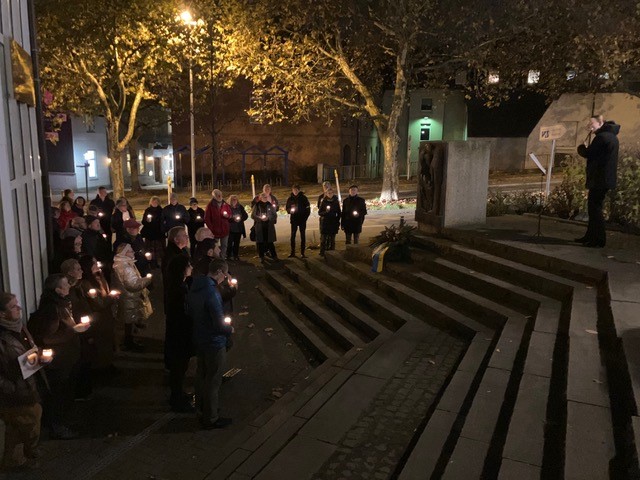 Die Stadt Hattingen, das Jugendforum sowie die Jüdische Gemeinde Bochum-Herne-Hattingen laden zur Erinnerung an die Geschehnisse der Reichspogromnacht am 9. November 1938 die Hattinger Stadtgesellschaft um17 Uhr vor das Hattinger Rathaus ein. Mit Lichtern der Erinnerung gehen die Teilnehmenden gemeinsam von dort durch die Fußgängerzone zum Synagogenplatz, um der Opfer der Shoah zu gedenken.